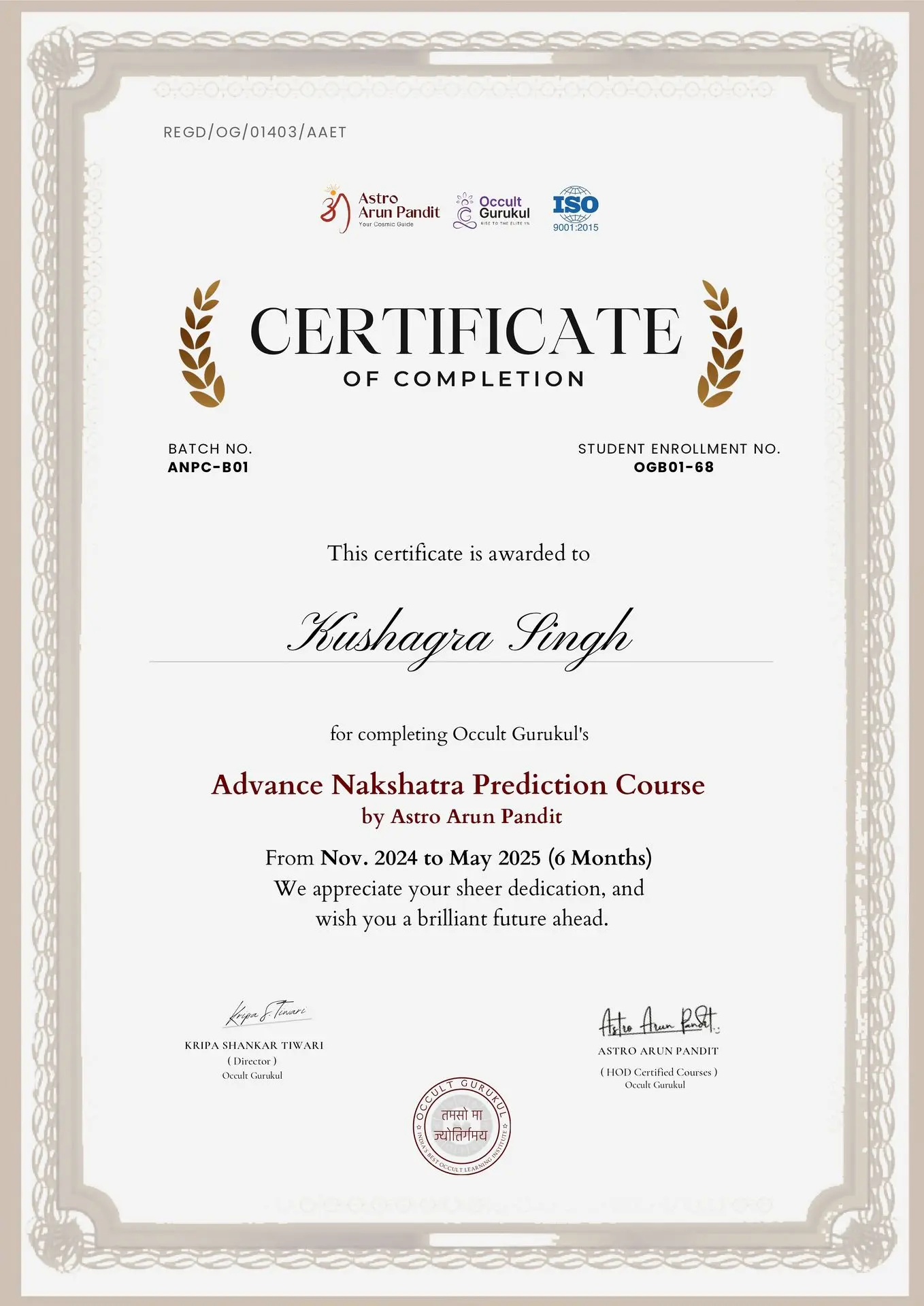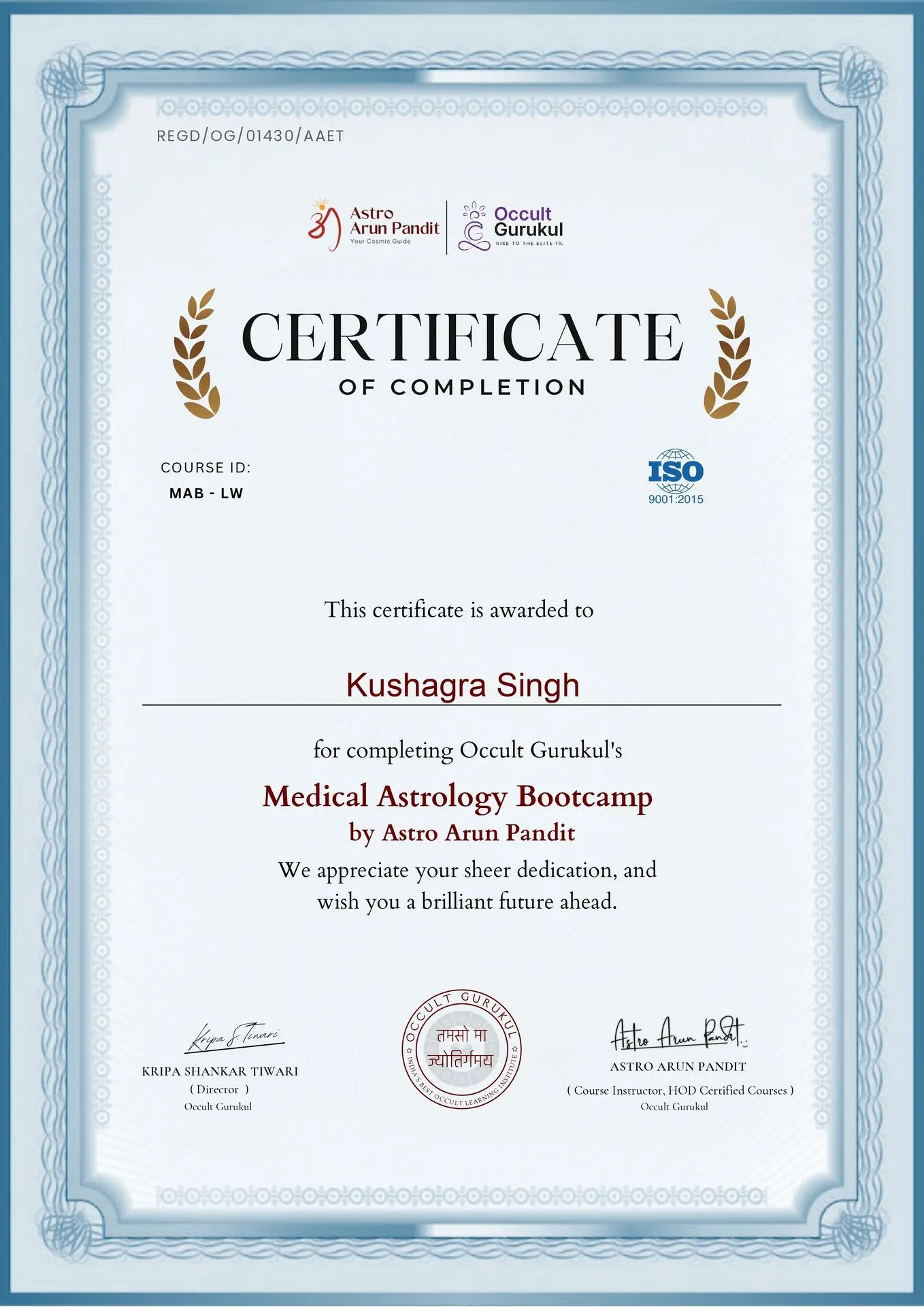 Kushhagra embodies a profound mastery of Vedic Astrology, Jaimini Jyotish, Bhrigu Nandi Nadi, KP Astrology and Karma Alignment. His vast knowledge extends to the realms of Numerology, Crystals, Rudraksha, and Gemstones, empowering others to discover their true potential.